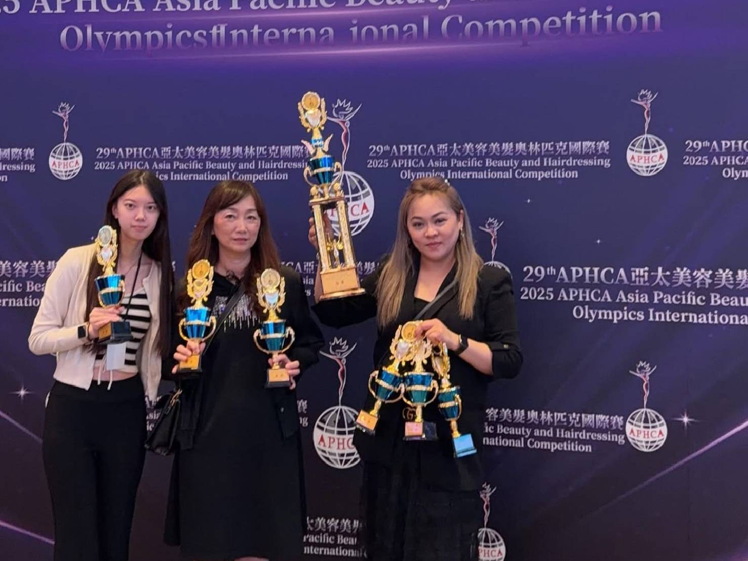 輔英科大健康美容系柯美華副主任率三位同學勇闖總獎金一百二十八萬元的「2025 APHCA亞太美容美髮奧林匹克國際賽」,在二十四個國家逾二千六百名美業高手競逐下,榮獲一金六優勝及一座奧林匹克盃創作獎佳績,展現輔英在培育美業菁英的成就。