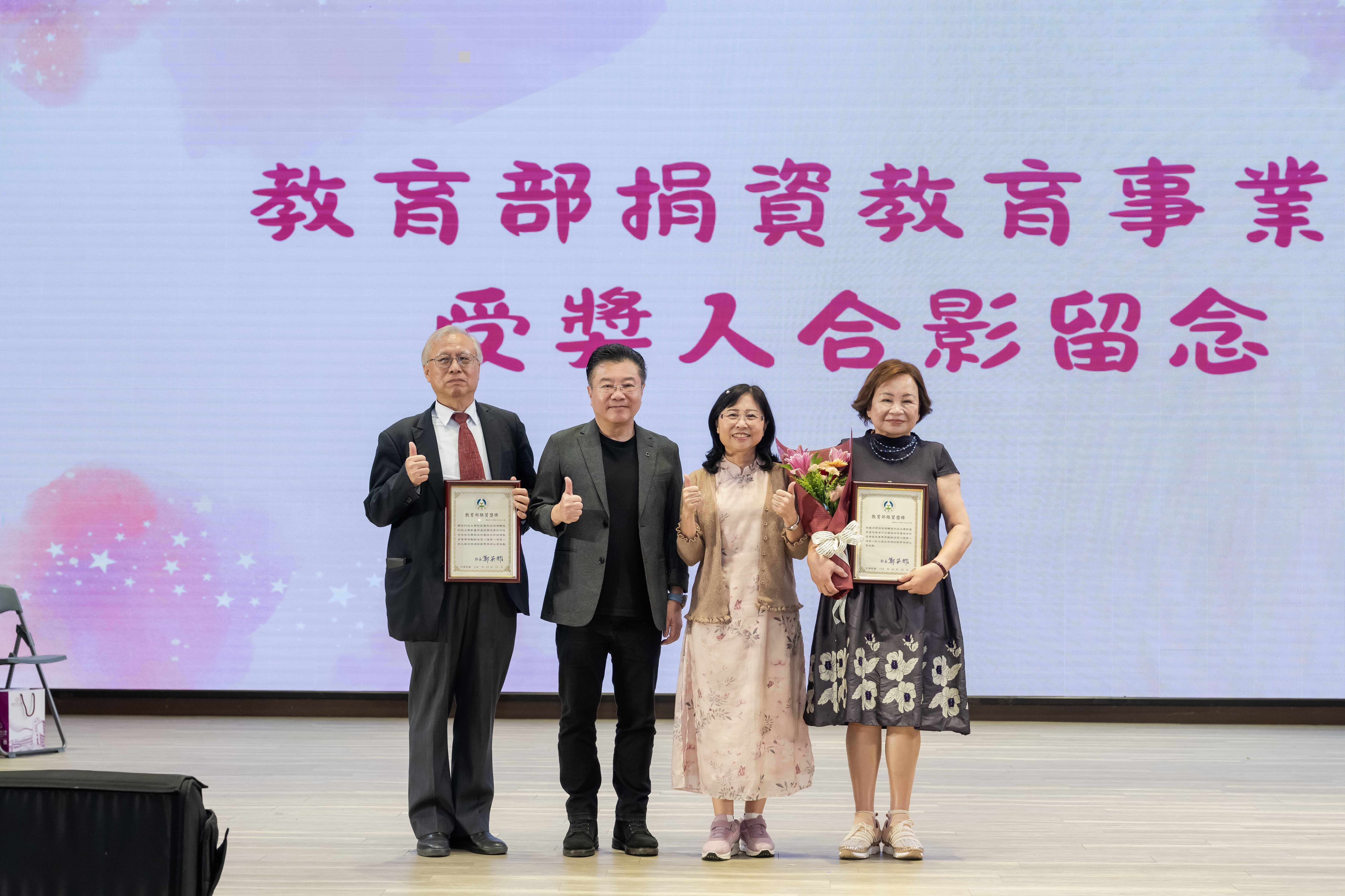 另,表揚捐資興學受獎人有海富國際漁業集團徐麗月董事長、旭登長照體系李麗珠執行長、淇譽電子科技許黃月華董事長、旗勝科技、義大醫院。榮獲一一四年度教育部捐資教育事業獎銀質獎有輔英科大附設醫院、徐麗月董事長。作為全國唯一設有附設醫院的科技大學,在少子化衝擊下,校院合作成為學校最堅實的支柱,協助學校穩健前行、持續培育大健康人才。