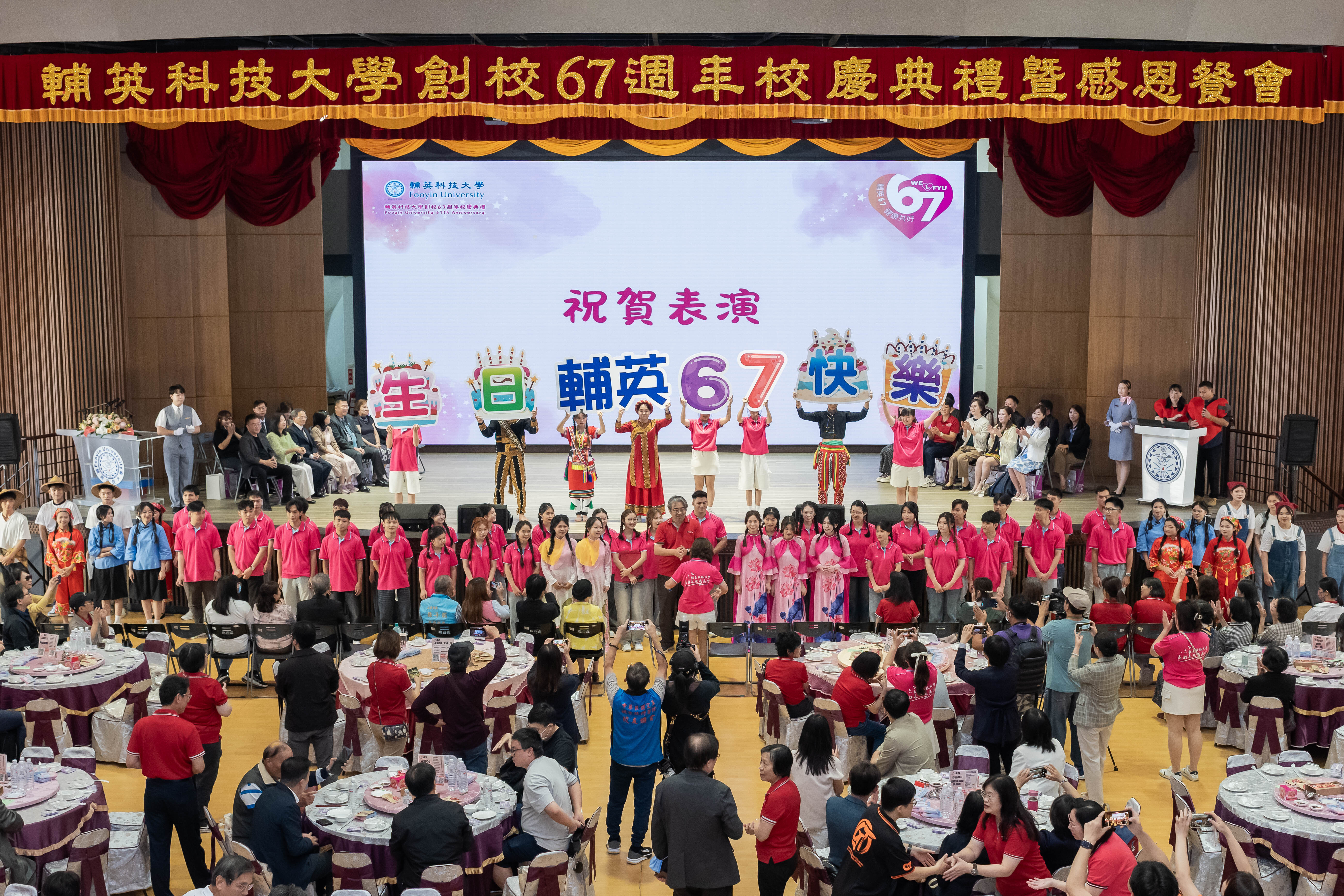 校慶典禮、校友返校日暨感恩餐會於中正堂舉行,中正堂穿堂設有線上藝文展作品、輔英附設醫院護理師招募攤位、送子鳥玩偶穿梭全場超吸睛,境外生表演,樂齡大學校友隨桌服務暖心,校友企業大雄廚房與保健營養系合作推出小點心品味,主辦單位還精心安排樂齡大學校友高歌張鵬圖創辦人生前最喜歡的「綠島小夜曲」,令全場動容。群英會館安排「吃喝玩樂群英匯」二天一夜活動,慈母湖環湖道路則舉辦園遊會市集,校園洋溢歡樂氣氛。