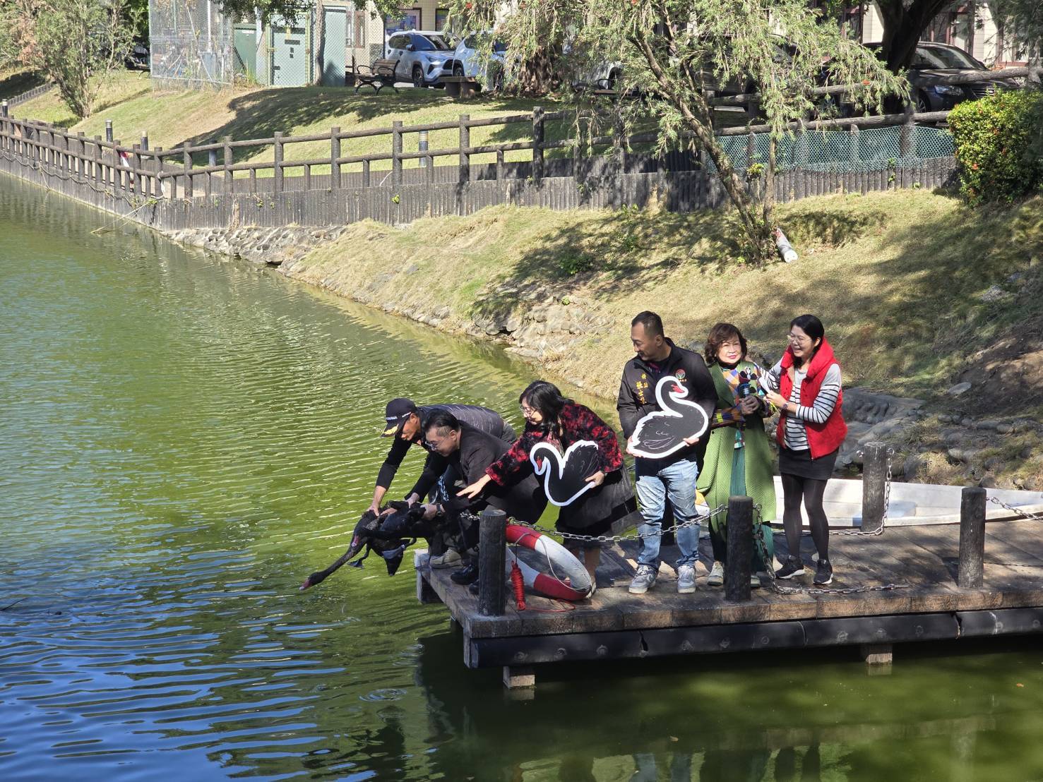 捐贈儀式結束後,在眾人祝福目光下,黑天鵝以優雅步伐緩緩走入湖中,正式展開在輔英校園的新生活,也為新的一年揭開充滿希望與生機的序幕。