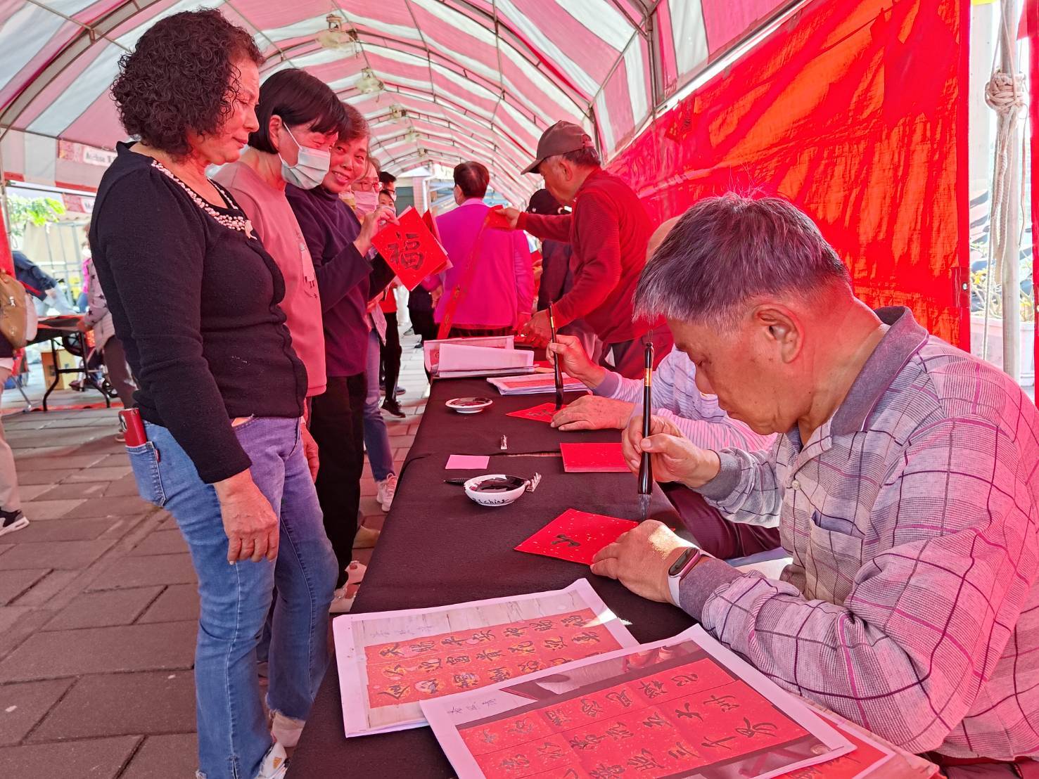 上寮社區活動中心十八日提前迎來滿滿的年味與溫暖,一早里民就扶老攜幼陸續到場,看著書法老師現場揮毫,一幅幅春聯寫下吉祥詞,也承載著對新年的期盼與祝福,居民紛紛排隊索取,希望能為家中添上新春氣息,迎接嶄新的一年。