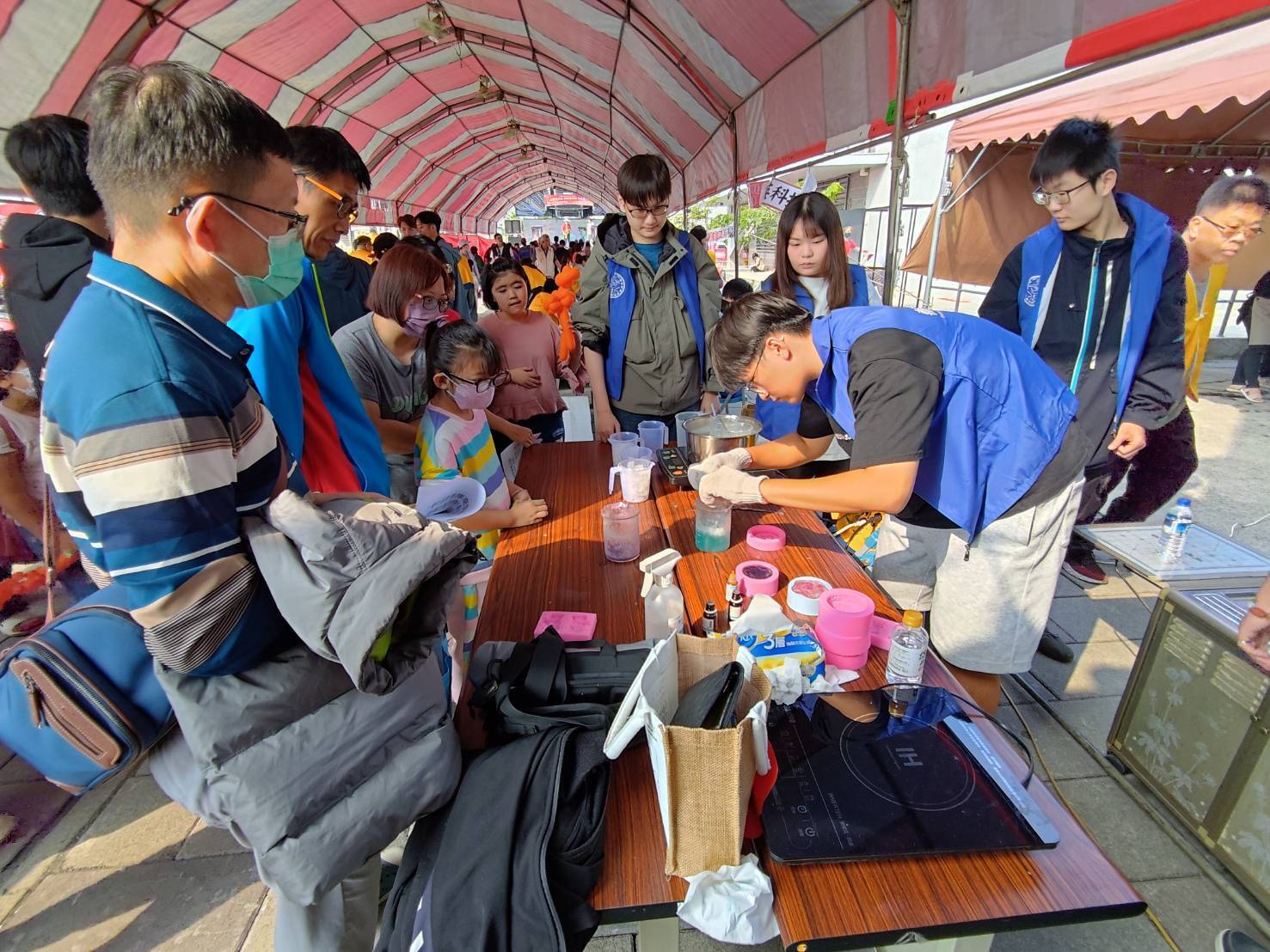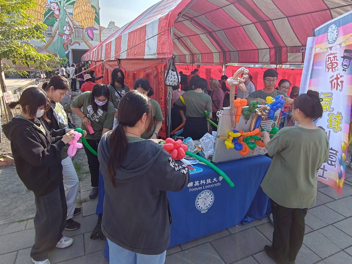 現場不僅開運手工皂搶手,曾榮獲教育部全國大專校院學生社團評選「優等獎」及「全場最佳人氣獎」的輔英魔術氣球創意社,更是吸引大小朋友目光,學生以純熟技巧製作各式可愛動物與新年吉祥造型氣球,孩子們圍繞在學生身旁排隊索取,為社區增添滿滿年節歡樂氣息。