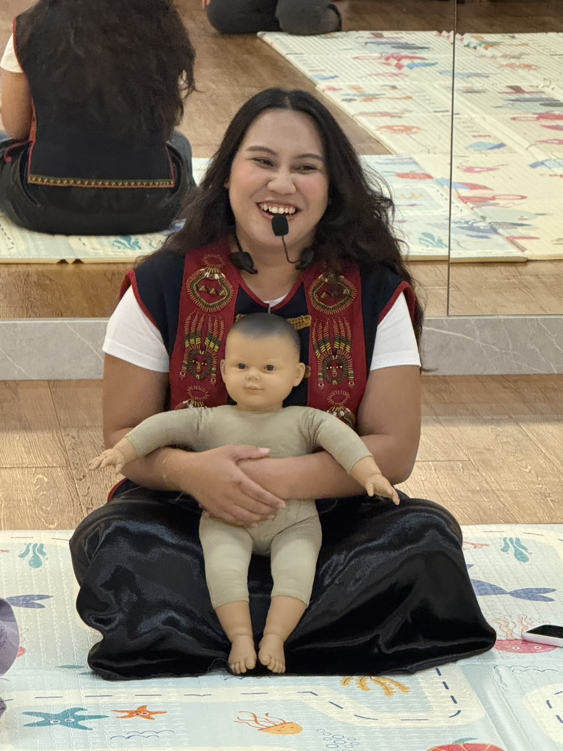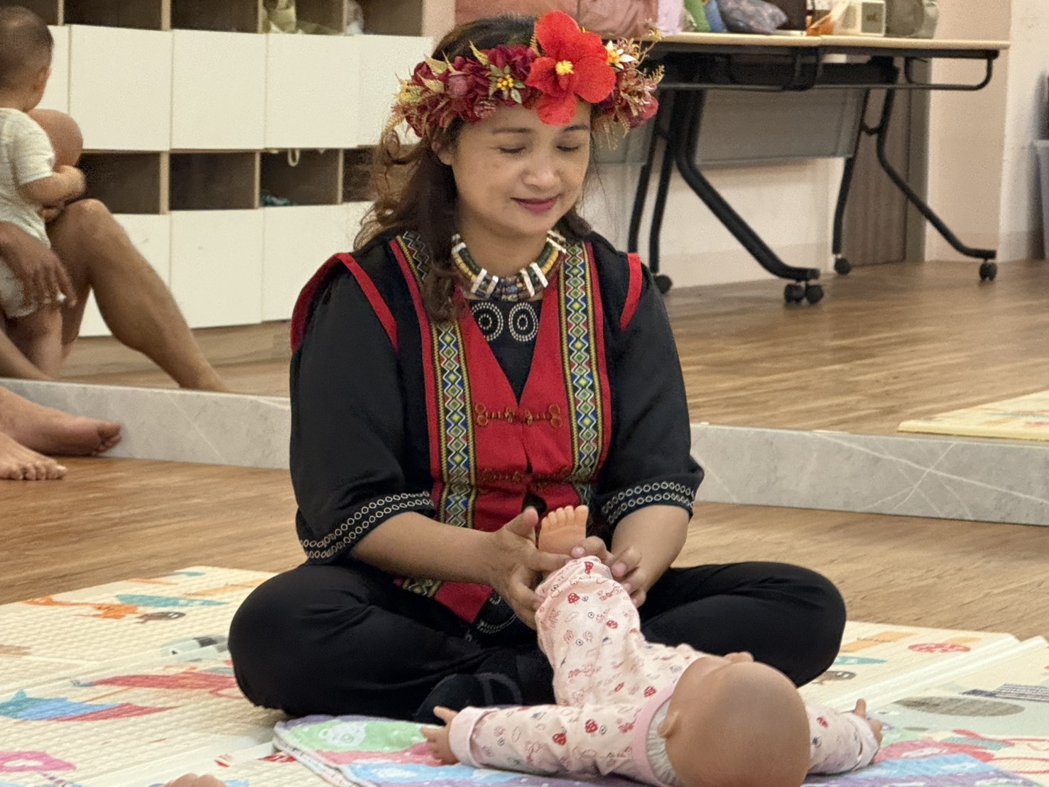 活動中,不僅有專業示範與親子互動,還穿插原民族群特色歌謠。參與的媽媽們表示,這樣的安排讓孩子在運動與按摩中感到快樂安心,也更貼近自己的文化根源。一位學員分享心得說:「原本以為自己只是單純來學習技能,但在過程中發現,不僅增加了就業能力,也讓我能用族語歌謠陪伴孩子,感受到文化的力量,這對我來說是最珍貴的收穫。」