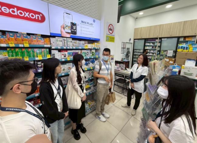 健康事業管理系則在黃傑康副教授帶領下,前往馬來西亞康寧藥劑進行「藥劑海外實習」。學生們深入藥局與社區,體驗當地醫藥服務模式。戴君宴(台東女中畢)表示:「馬來西亞藥局強調與社區連結,讓我理解公共衛生的重要角色。」李采瑄(道明高中畢)則說:「跨文化學習讓我知道醫藥專業需要更多傾聽與同理心。」楊承勳(道明高中畢)則幽默地分享:「每天都像一場新挑戰,藥學知識與語言表達都同步升級!」