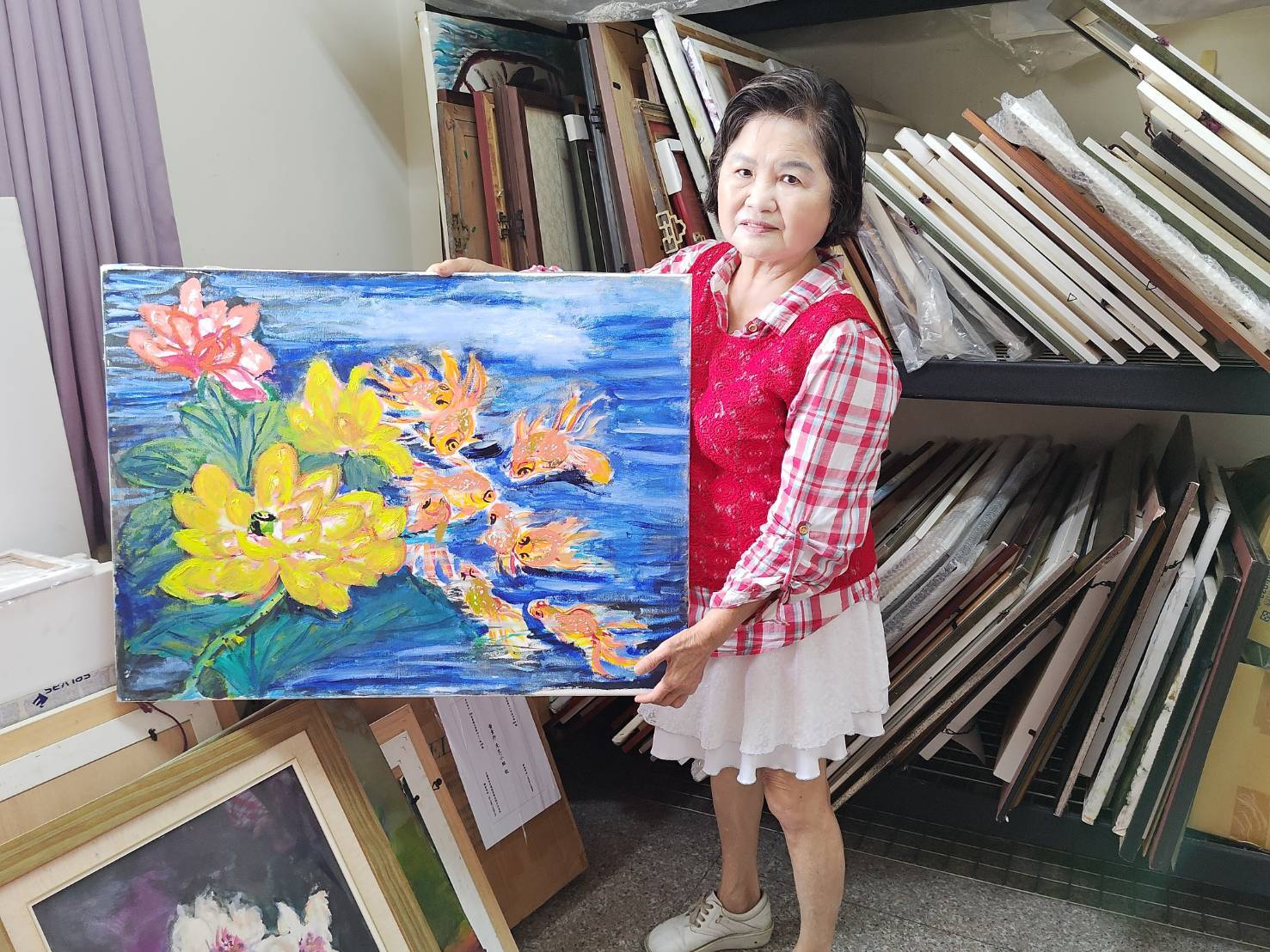 黃素丹曾任臺大醫院雲林分院護理長,50歲退休後投身創業,成立居護所與醫療器材公司。她笑說:「學畫原是為興趣,後來邀醫師、護理師、營養師、會計人員等一起學,讓藝術變成陪伴。」如今她家中設有畫室,持續創作魚、荷花與風景主題,以畫療癒人心、以藝會友。她感性地說:「輔英是我人生的起點,回來參加校慶比獲獎更有意義。」