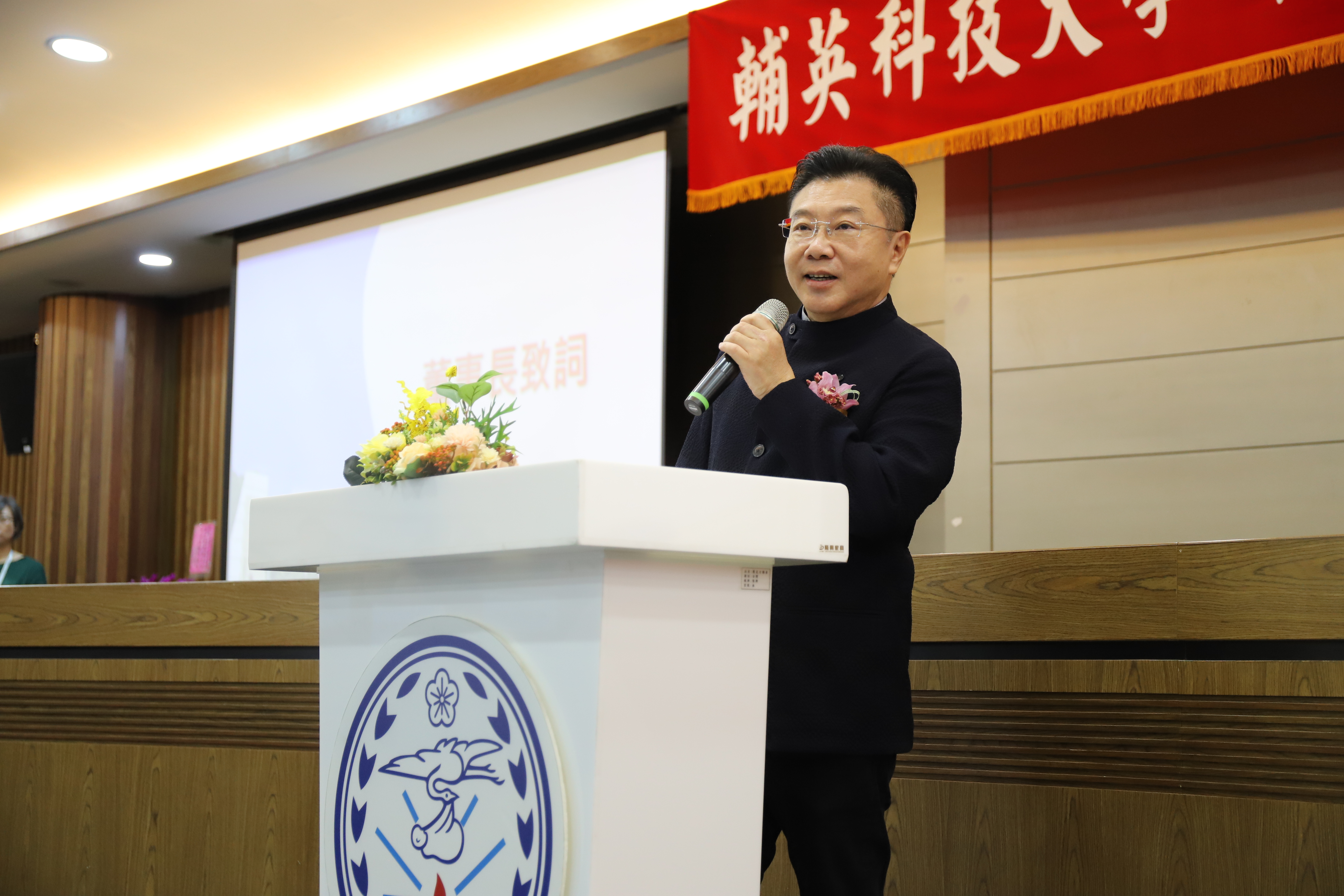 張可立董事長致詞表示,大家齊聚一堂見證的不僅是校長職務的薪火相傳,更是輔英教育使命的持續延伸。這幾年輔英在林惠賢校長帶領下績效卓著,學生就學穩定度、畢業生就業率、國際交流數排名、簽訂MOU境外學校達三百多所、國際專班數創新高等。針對林惠賢卓越的領導力與無私的奉獻,他代表董事會表達最誠摯的感謝。